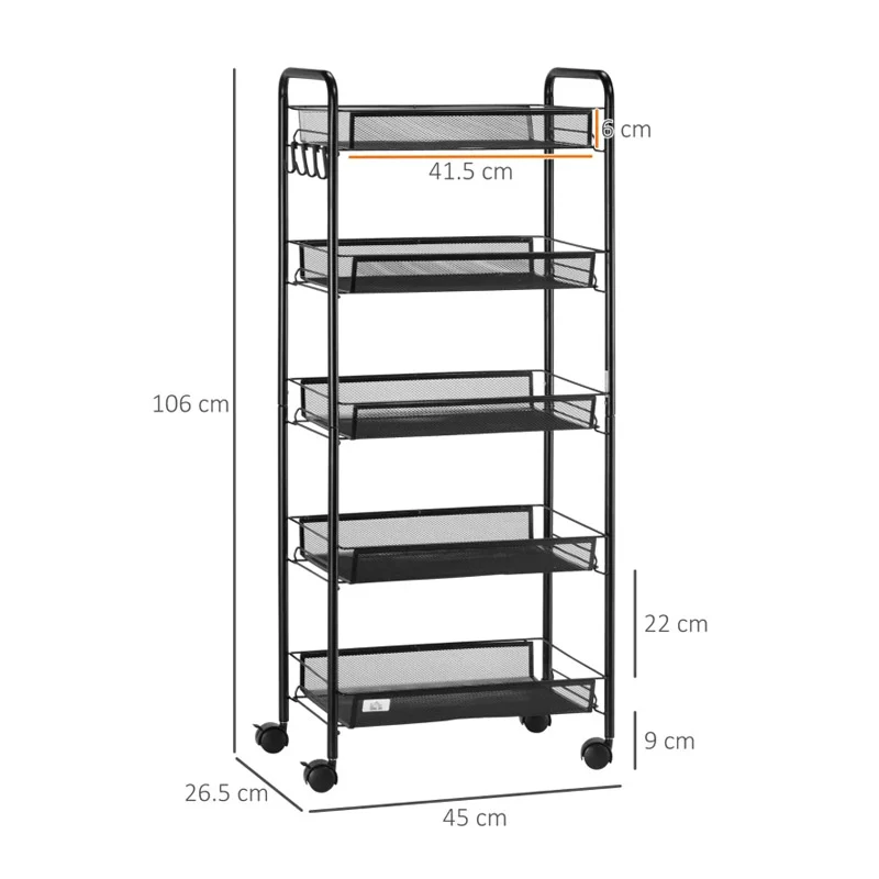 Πολυλειτουργικό Μεταλλικό Τρόλεϊ με 5 Ράφια 45 x 26.5 x 106 cm HOMCOM 850-164