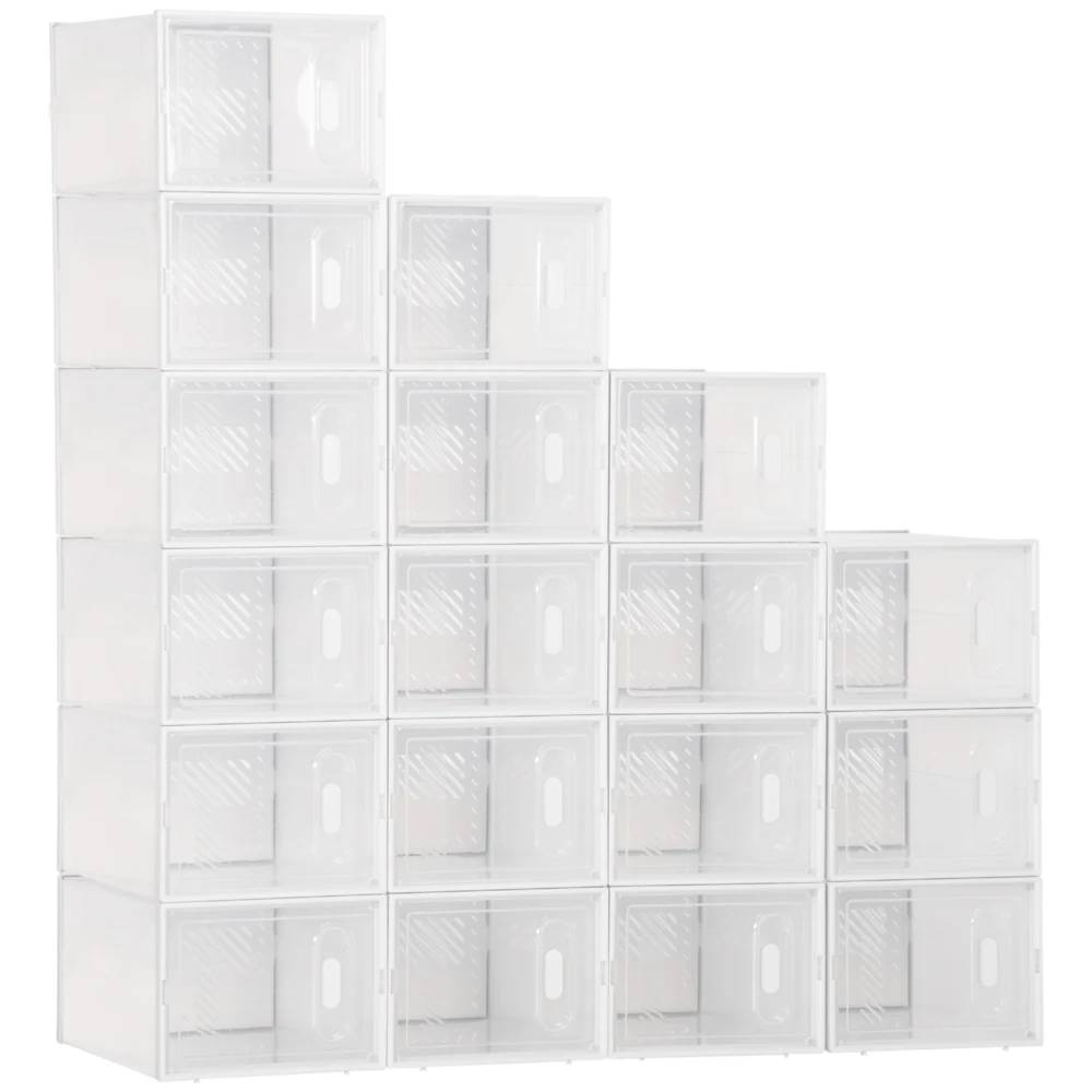 HOMCOM Ορθογώνια σχάρα παπουτσιών από PP Plastic, 18 κουτιά 25x35x19 cm για παπούτσια max 43 EU, Ρούχα και βιβλία 850-173V01
