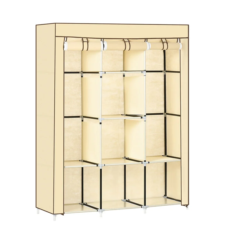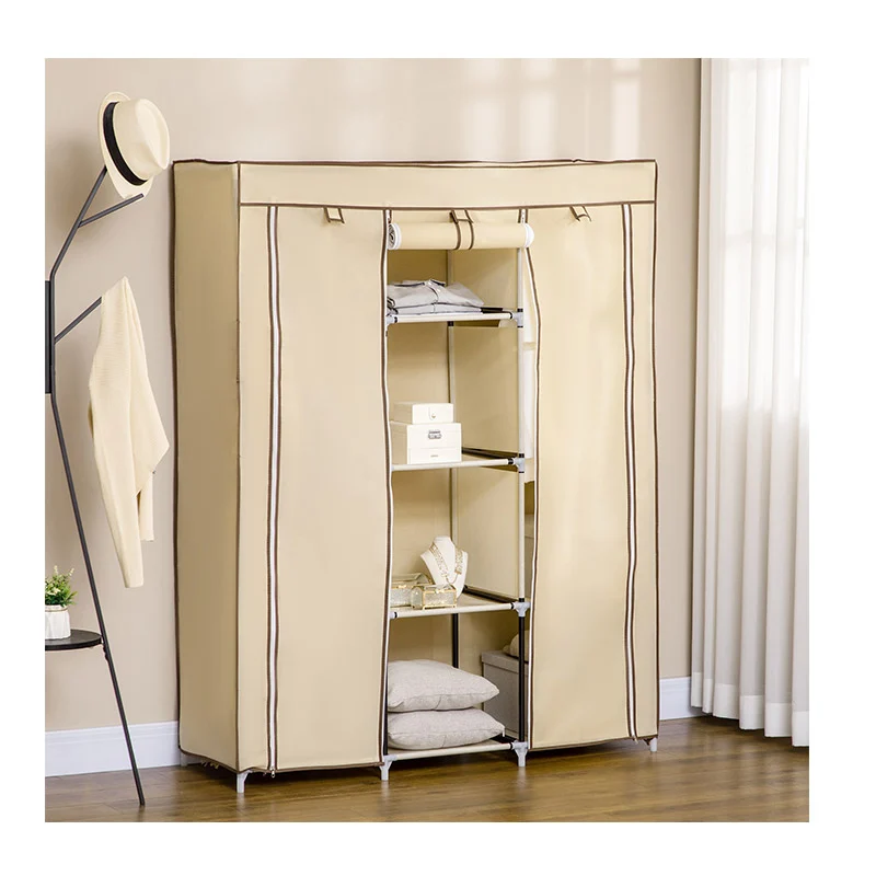 Η ντουλάπα έχει υφασμάτινο κάλυμμα ώστε να προφυλάσσει τα ρούχα σας από τη σκόνη, το οποίο μπορεί να κλείσει με τη βοήθεια ενός ενσωματωμένου φερμουάρ ή προς τα πάνω, τυλιγμένο και στερεωμένο.