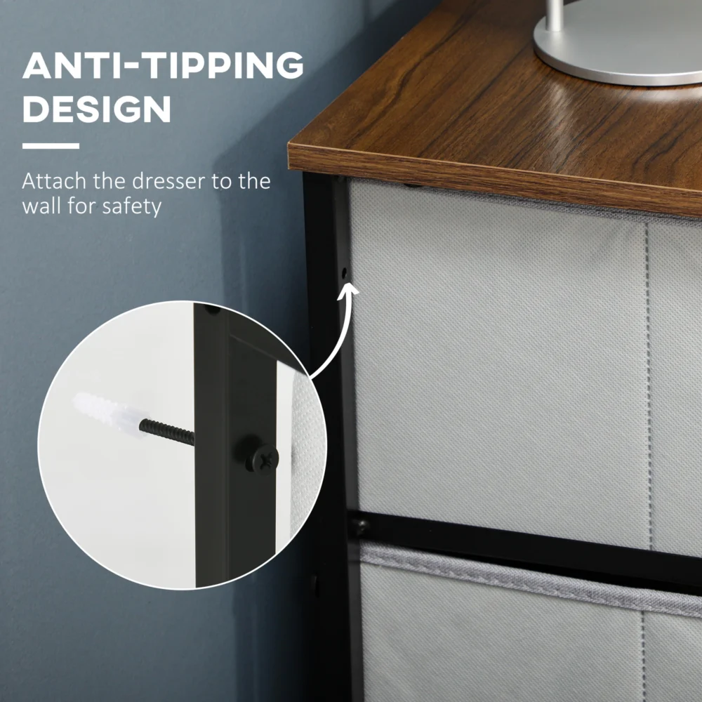 Συρταριέρα HOMCOM 6 αφαιρούμενα συρτάρια από ύφασμα, βιομηχανικό στυλ ξύλου και χάλυβα, 80x30x62,5 cm 850-268V00GY