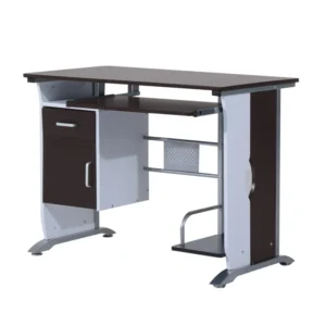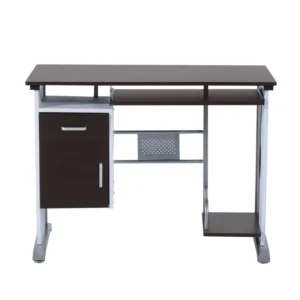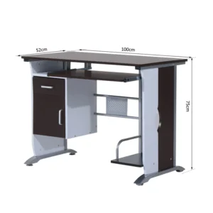 Το γραφείο, από την εταιρία HOMCOM, διαθέτει μεταλλικό σκελετό και επιφάνειες από MDF ξύλο. Εξοπλισμένο με συρόμενο δίσκο πληκτρολογίου, συρτάρι, ντουλάπι και θέση για τον πύργο του υπολογιστή, προσφέρει άφθονο χώρο για αποθήκευση Η / Υ, χαρτικών, εγγράφων κλπ. Έχει αντιολισθητικά πόδια για να παραμένει σταθερό και να προστατεύει το δάπεδο από γρατζουνιές.