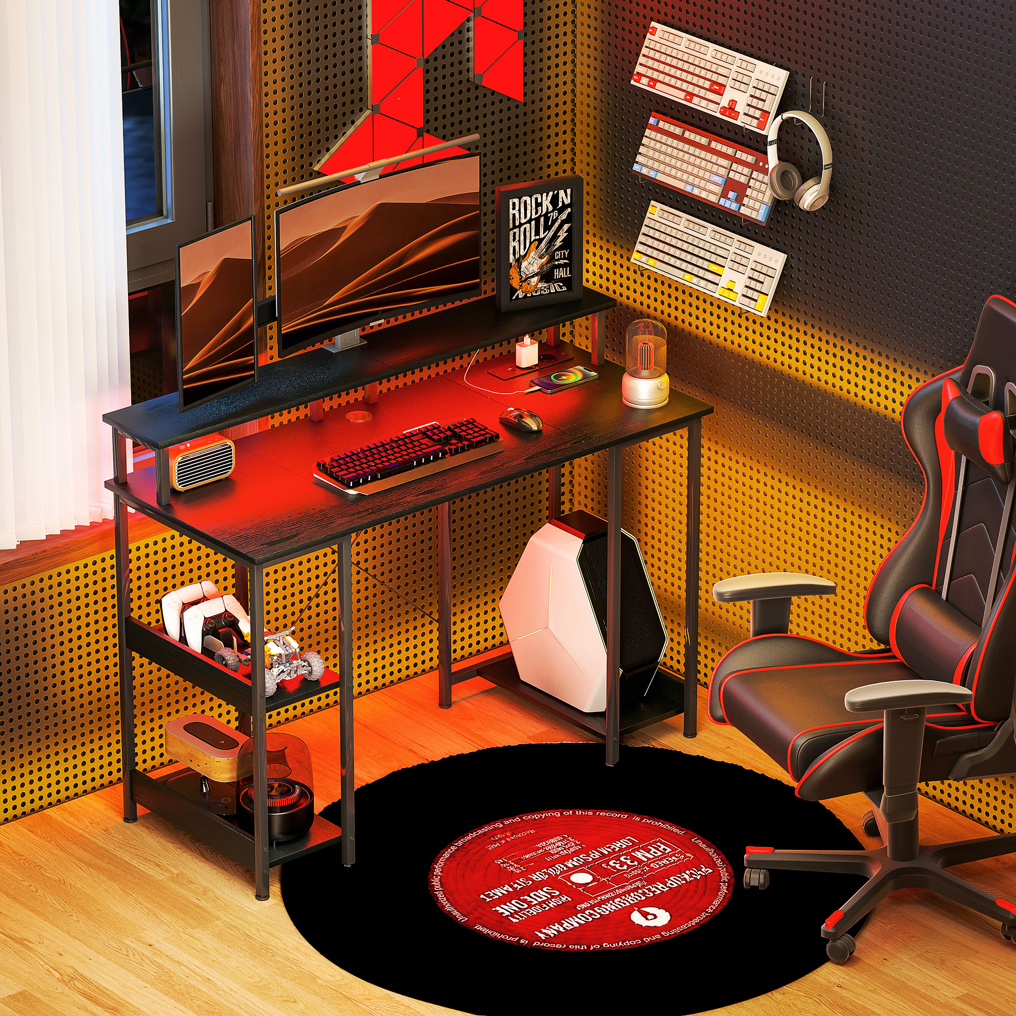 HOMCOM Αναστρέψιμο γραφείο για υπολογιστή με ηλεκτρικές πρίζες, φώτα, βάση οθόνης και ράφι, 120x50cm, μαύρο 920-100V90BK