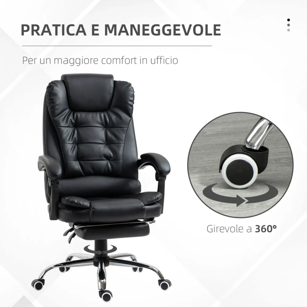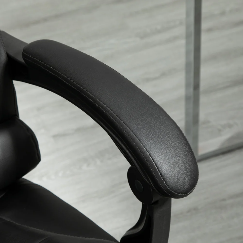 Καρέκλα γραφείου HOMCOM ρυθμιζόμενο ύψος με ανακλινόμενη πλάτη και στήριγμα ποδιών, 64,5x69x117-127 cm, Μαύρο 921-083V01BK