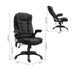 Η καρέκλα γραφείου, από την εταιρία HOMCOM, προσφέρει όχι μόνο ένα άνετο μέρος για να καθίσετε, αλλά και εξασφαλίζει απόλυτη χαλάρωση με το μασάζ σε 6 σημεία (2 στους ώμους, 2 στη μέση και 2 στους γλουτούς), καθώς και με τη λειτουργία θέρμανσης για την προώθηση της κυκλοφορίας του αίματος.
