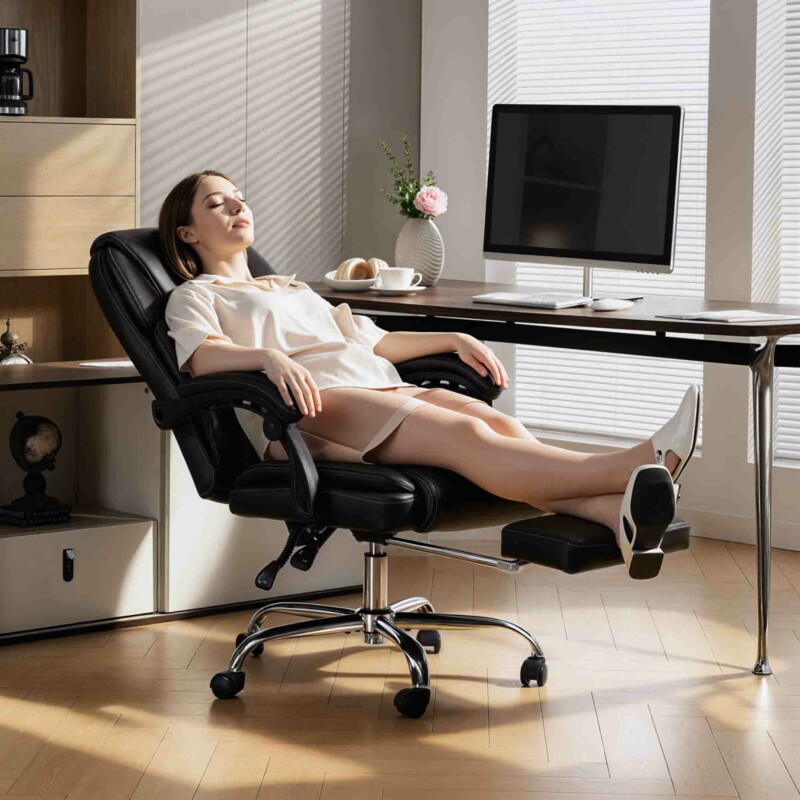 Με ενισχυμένη βάση από ατσάλι, η καρέκλα σας προσφέρει ασύγκριτη σταθερότητα και ασφάλεια. Αφεθείτε στην απαράμιλλη άνεση του μαλακού μαξιλαριού και απολαύστε υποστήριξη για ώρες. Είναι εξοπλισμένη με επεκτάσιμο υποπόδιο για απόλυτη χαλάρωση κατά τη διάρκεια των πολύτιμων διαλειμμάτων σας.