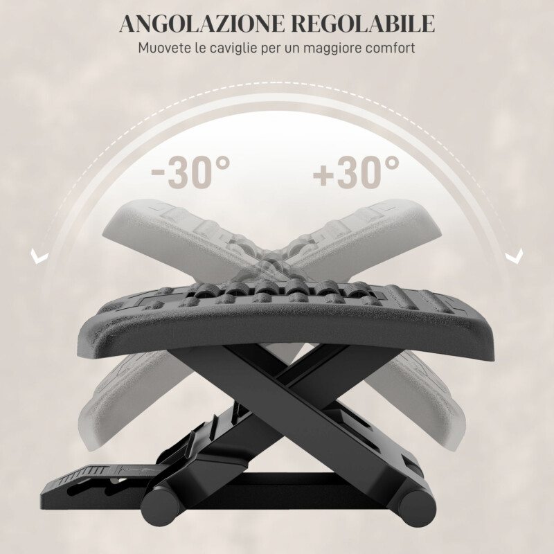 HOMCOM Εργονομικό Υποπόδιο Γραφείου με Ρολλά Μασάζ, Ρυθμιζόμενο Ύψος και Κλίση, Μαύρο 922-010V00BK