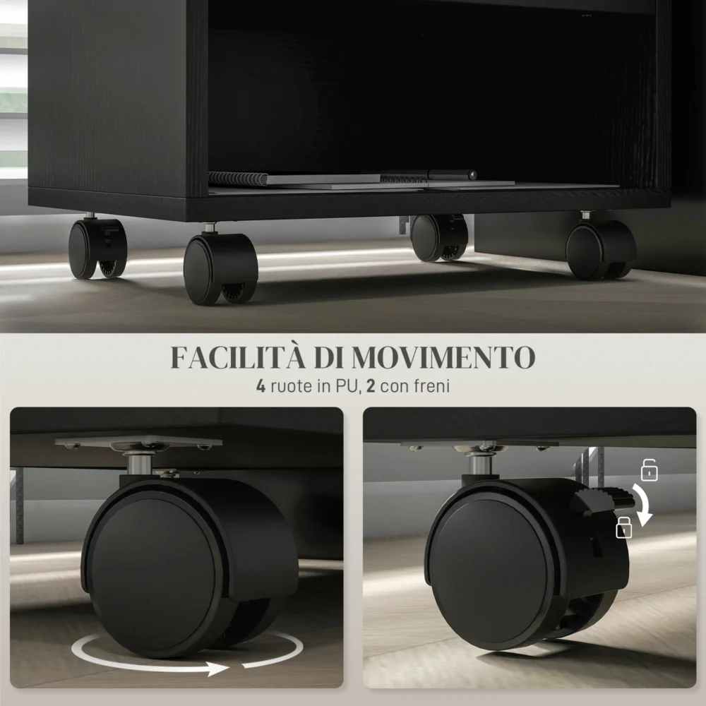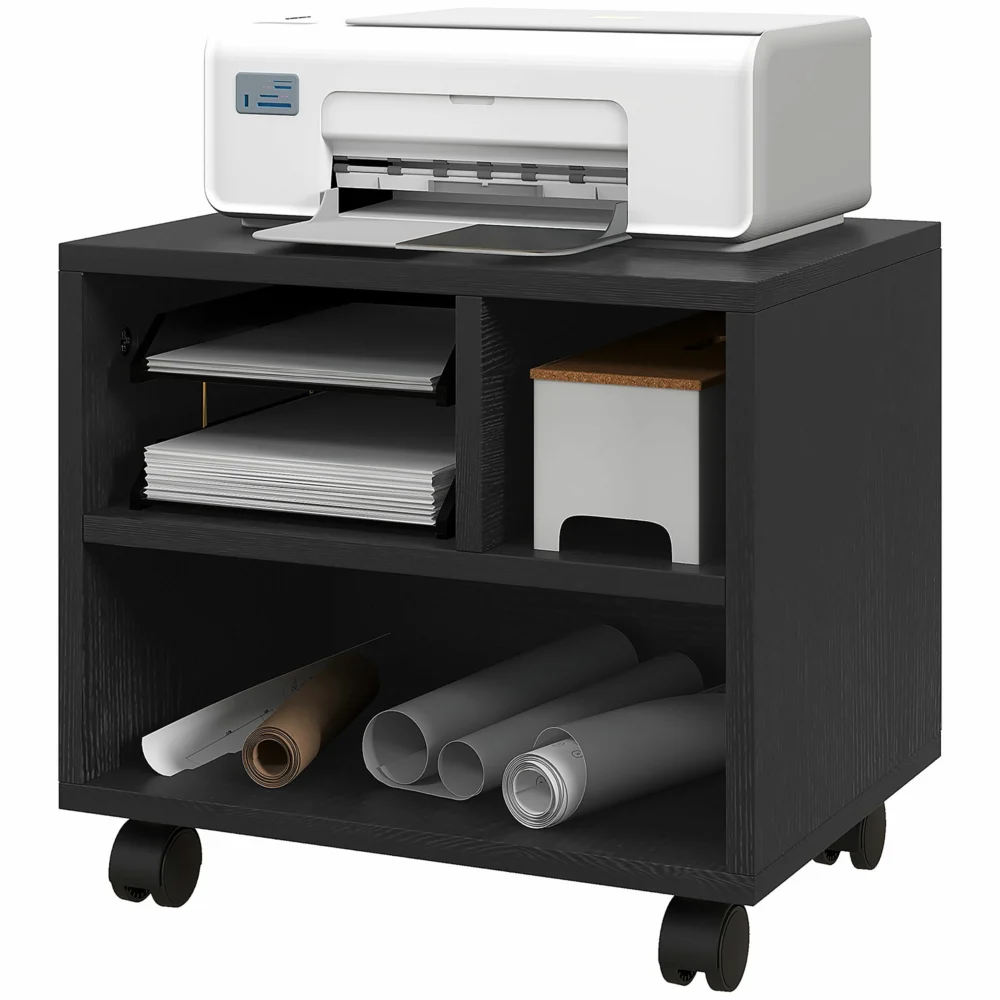 Ντουλάπι εκτυπωτή 2 επιπέδων HOMCOM με 3 θήκες και ρόδες για γραφείο και μελέτη, 40x30x36 cm, μαύρο 924-092V00BK