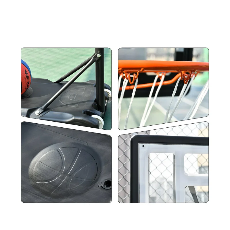 Η φορητή μπασκέτα, από την εταιρία HOMCOM, διασκεδάζει τα παιδιά προσφέροντας παράλληλα εκμάθηση στο άθλημα του μπάσκετ. Είναι φορητή, ελαφριά και η βάση της μπορεί να γεμίσει με νερό ή άμμο για επιπλέον σταθερότητα. Μπορεί να μετακινηθεί εύκολα, καθώς διαθέτει δύο τροχούς στη βάση. Διαθέτει στερεό ατσάλινο πλαίσιο για μακροχρόνια χρήση και ρυθμιζόμενο ύψος από 1.6 – 2.1 m, μέσω του περιστρεφόμενου κουμπιού.