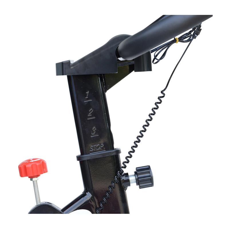 Το ποδήλατο, διαθέτει κάθισμα σε ρυθμιζόμενο ύψος 7 θέσεων και τιμόνι με ρυθμιζόμενο ύψος σε 4 επίπεδα. Έχει πίνακα ελέγχου με LCD οθόνη, από την οποία μπορείτε να ελέγχετε το χρόνο, την ταχύτητα, την απόσταση και τις θερμίδες που καίτε, καθώς και τους καρδιακούς παλμούς σας. Επιπλέον ενσωματώνει βάση για το κινητό σας καθώς και αντιολισθητικά πεντάλ με ιμάντες δεσίματος για μέγιστη ασφάλεια.