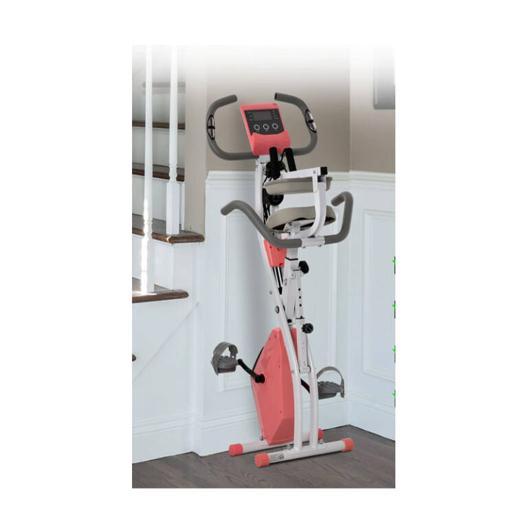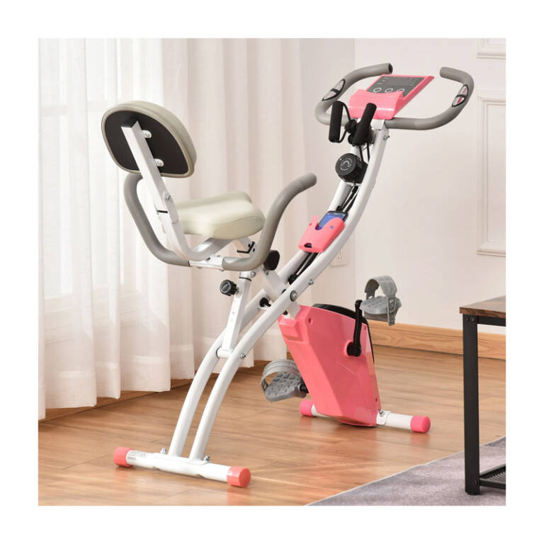 Αναδιπλούμενο Μαγνητικό Ποδήλατο Γυμναστικής με Ιμάντες Αντίστασης Χρώματος Ροζ HOMCOM A90-196PK