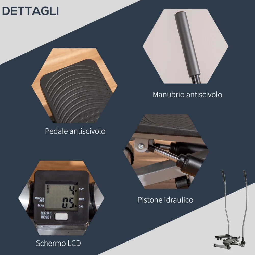 HOMCOM Stepper Handlebar Handles Step Fitness με οθόνη LCD για το σπίτι και το γυμναστήριο – Ασημί A90-281SR