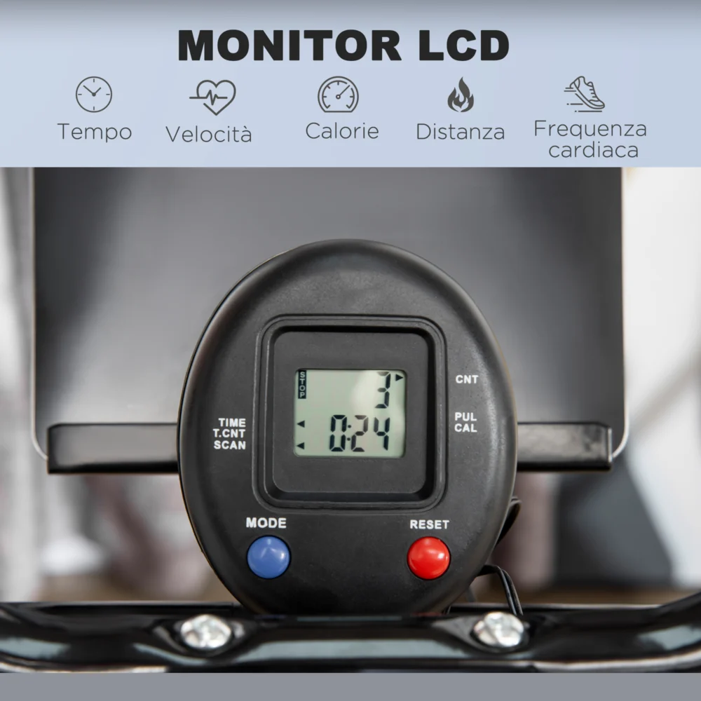 - LCD οθόνη (χρόνος, ταχύτητα, απόσταση, θερμίδες και καρδιακός ρυθμός)