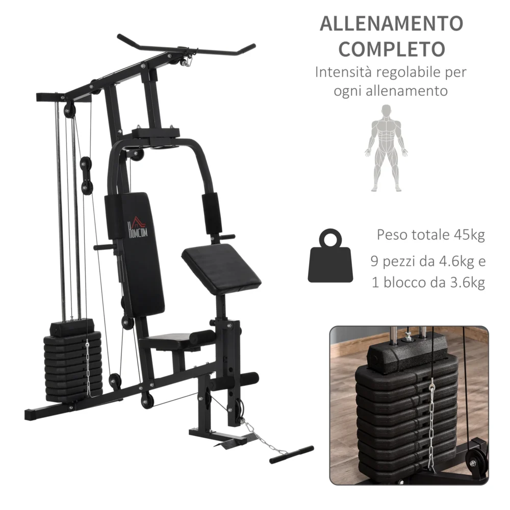 HOMCOM Fitness Station for Home and Professional Workout, Steel Multifunction Gym, 148x108x207cm – Μαύρο A91-132