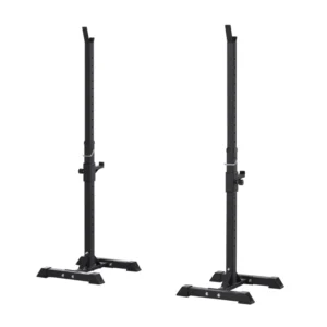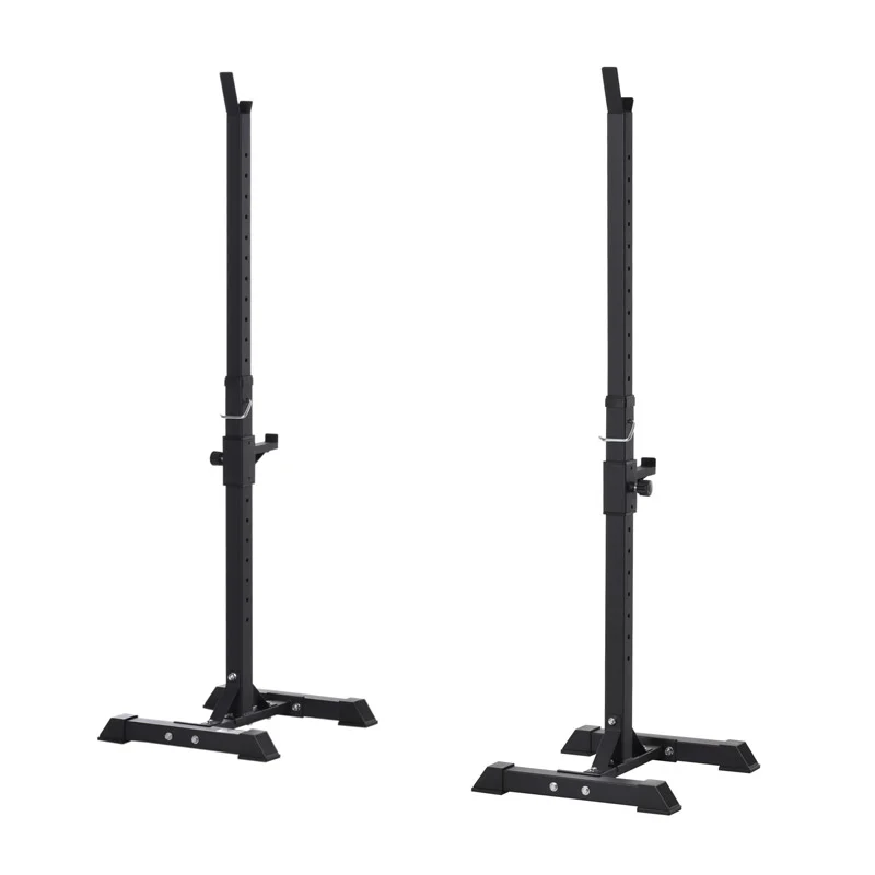 Το σετ, από την εταιρία HOMCOM, αποτελείται από 2 ορθοστάτες για μπάρες βαρών, κατασκευασμένοι από ατσάλινους σωλήνες. Με συμπαγής κατασκευή μπορούν να υποστηρίξουν έως και 150 Kg και είναι ρυθμιζόμενοι καθ’ ύψος σε 12 επίπεδα για να καλύψουν όλες τις ανάγκες σας. Τα 4 πόδια στο κάτω μέρος κάνουν τη δομή πιο σταθερή και χωρίς κίνδυνο γρατσουνιών στο πάτωμα.