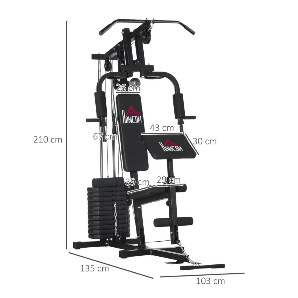 HOMCOM Fitness Station με γεμισμένο κάθισμα και πλάτη, σε ατσάλι και PU, 135x103x210 cm, Μαύρο A91-178