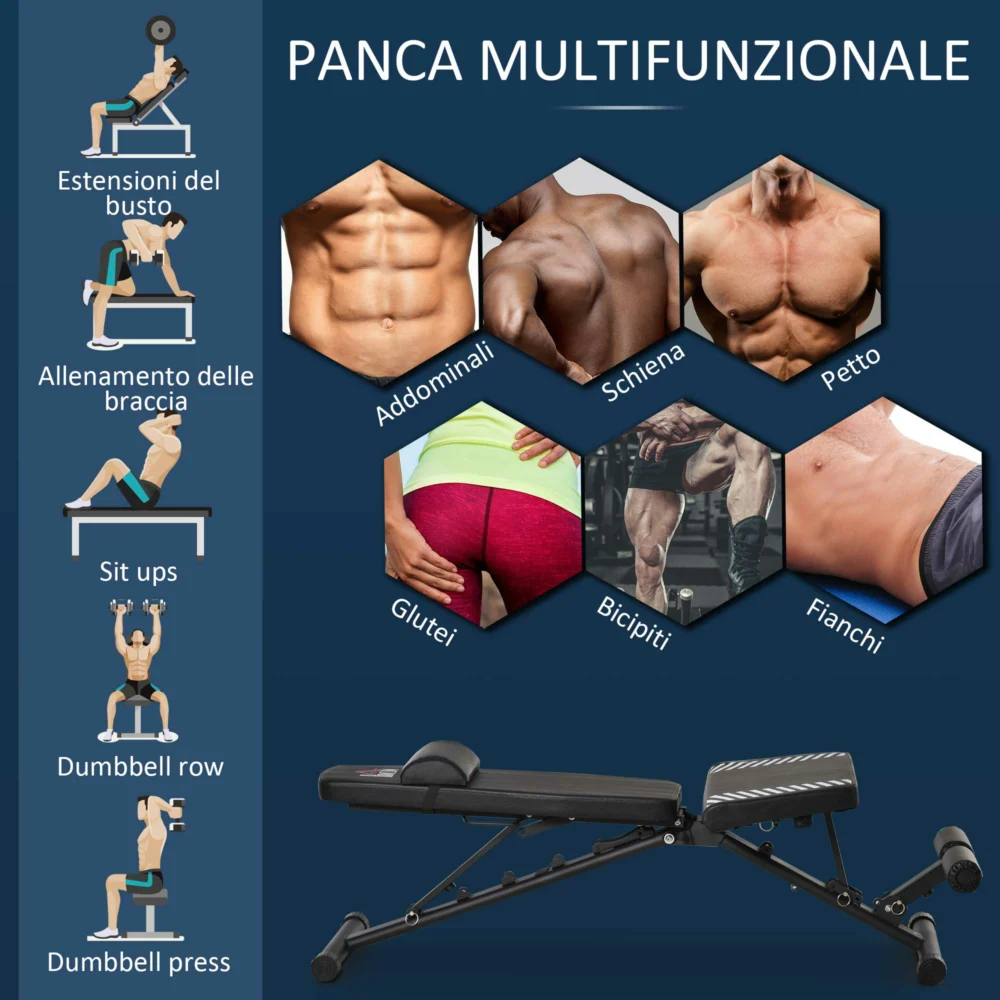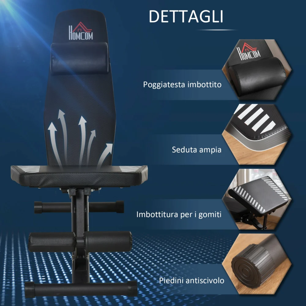 HOMCOM Πτυσσόμενος πάγκος βάρους με πλάτη και ανακλινόμενο κάθισμα, πάγκος πολλαπλών λειτουργιών για γυμναστήριο και σπίτι από ατσάλι A91-223