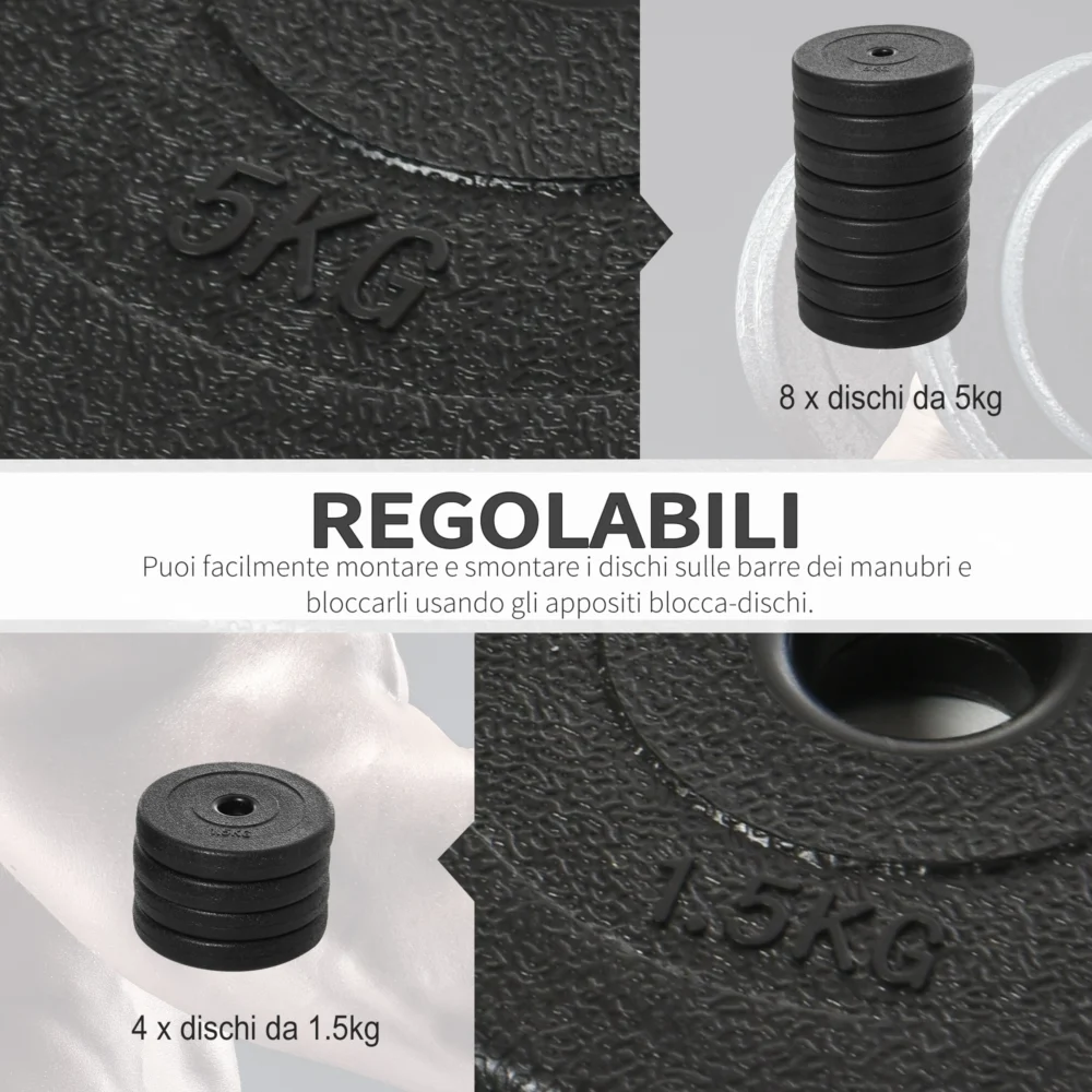 HOMCOM Set Dumbbells Gym 50kg Ρυθμιζόμενο κιτ Βαρών Bodybuilding με 12 Λαστιχένια Δίσκους Μαύρο B1-0127
