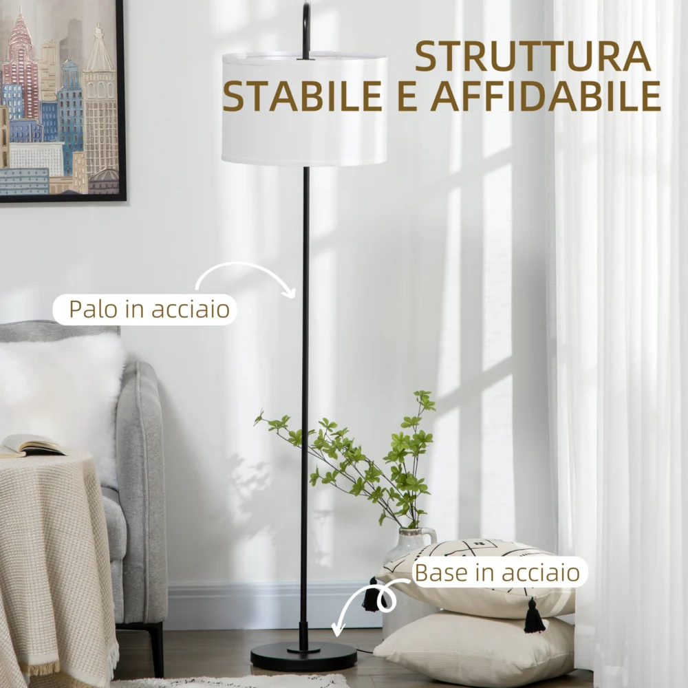 HOMCOM Μοντέρνο Φωτιστικό δαπέδου από ατσάλι με υφασμάτινο αμπαζούρ λινό, 64x38x163,5 cm, λευκό και μαύρο B31-329