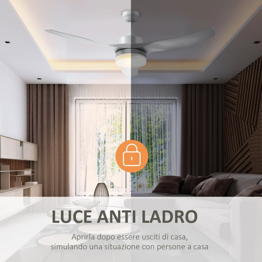 HOMCOM 3 Mode LED Light Ανεμιστήρας Οροφής με Τηλεχειριστήριο, 6 Ταχύτητες, Φ132x40cm B31-392WT