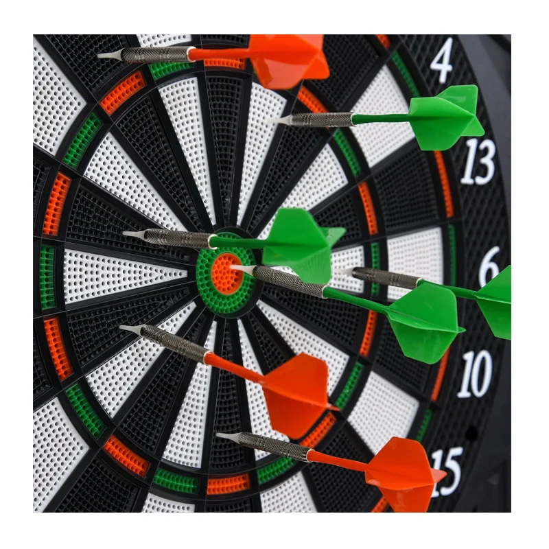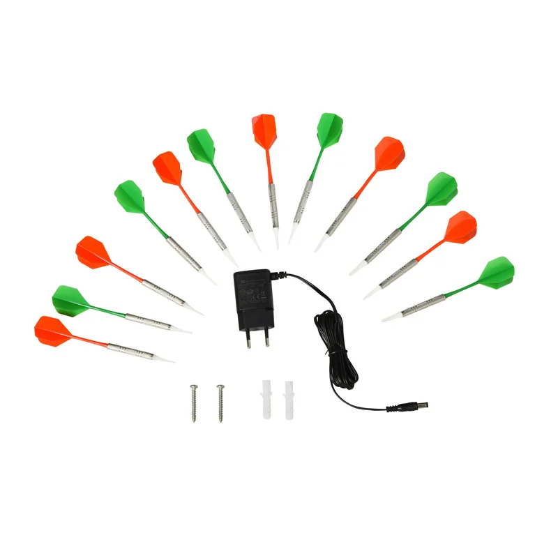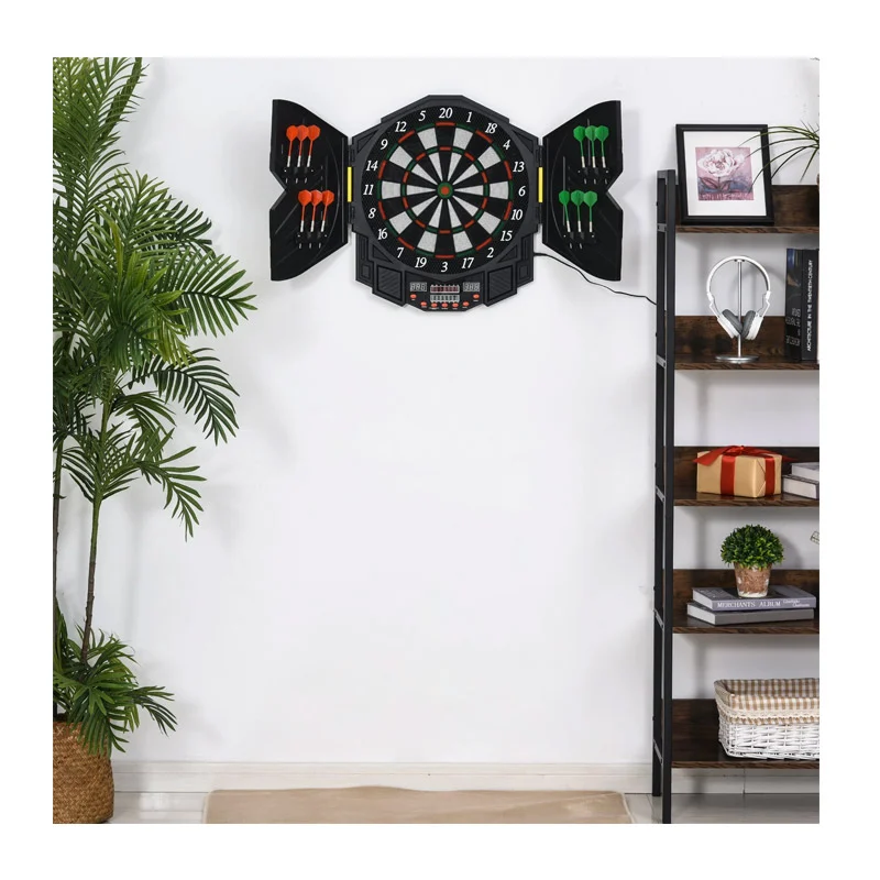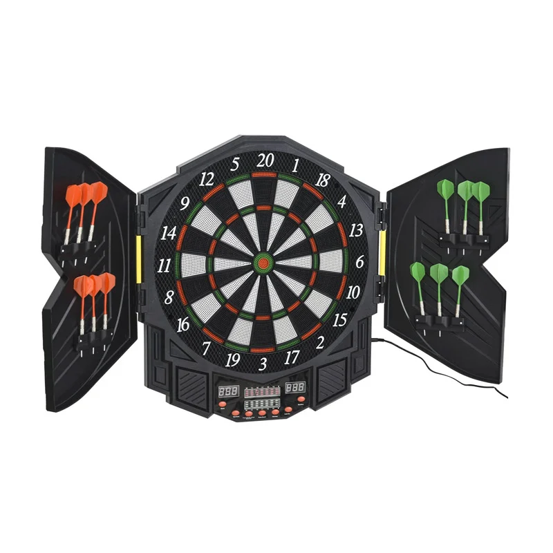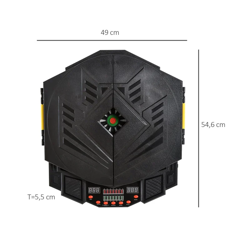 Ο ηλεκτρονικός στόχος της HOMCOM σας δίνει την επιλογή μεταξύ 27 παιχνιδιών και 216 παραλλαγές παιχνιδιών, συμπεριλαμβανομένης της λειτουργίας τουρνουά. Η εμφάνιση των αποτελεσμάτων και των βαθμολογιών γίνονται μέσα από τις 4 οθόνες LED, διαθέτει 12 βελάκια και είναι κατάλληλος για να παίζουν έως 8 παίχτες ταυτόχρονα. Τα διαδραστικά ηχητικά εφέ και η έξοδος φωνής σας ενημερώνουν πάντα σε ποιο σημείο βρίσκεστε.