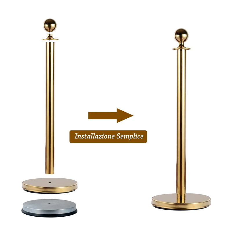 Σετ Διαχωριστικά Κολωνάκια από Ανοξείδωτο Ατσάλι με Σχοινί 1.5 m Χρώματος Χρυσό 2 τμχ HOMCOM E11-002GD