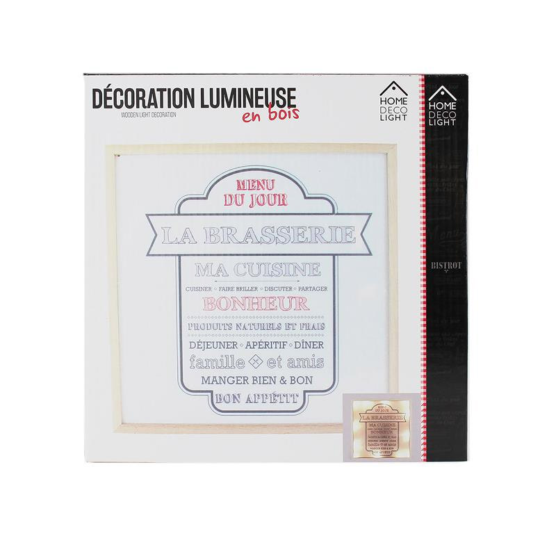 Επιτοίχιο Ξύλινο Τετράγωνο Φωτιστικό LED Πίνακας La Brasserie 24 x 24 x 3 cm Home Deco Factory HD1466