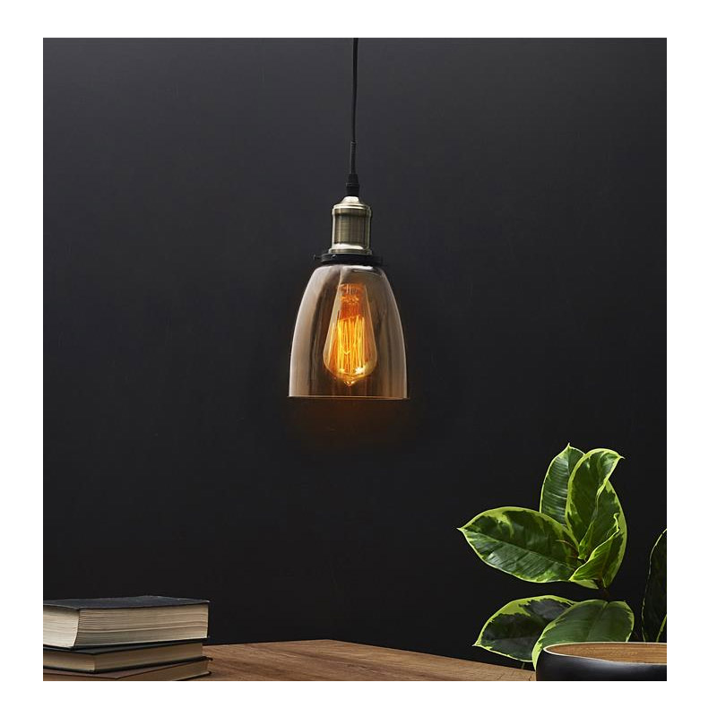 Το κρεμαστό φωτιστικό οροφής, από την εταιρία Home Deco Factory, διαθέτει μεταλλική βάση και μεταλλική υποδοχή λαμπτήρα. Έχει γυάλινο αμπαζούρ σε σχέδιο καμπάνας γκρι χρώματος, μαύρο πλεκτό καλώδιο μήκους 80 cm και δέχεται λάμπα Ε27 40 W.