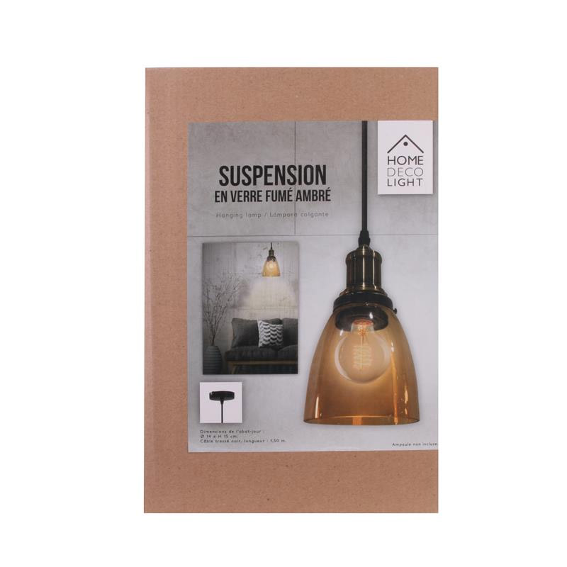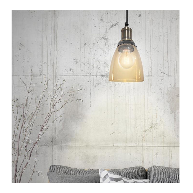 Κρεμαστό Μεταλλικό Μονόφωτο Φωτιστικό Οροφής με Γυάλινο Αμπαζούρ Καμπάνα Χρώματος Καφέ Ανοιχτό E27 40 W Home Deco Factory LA12004