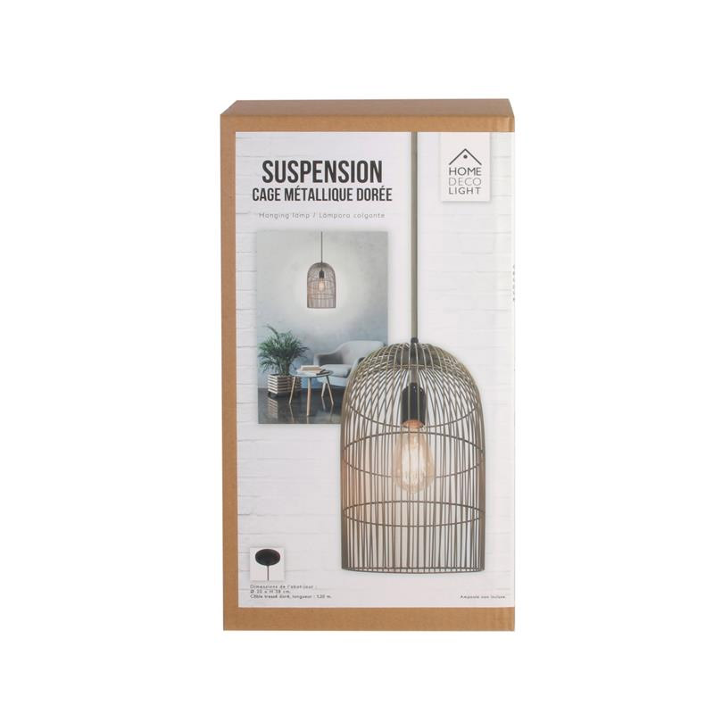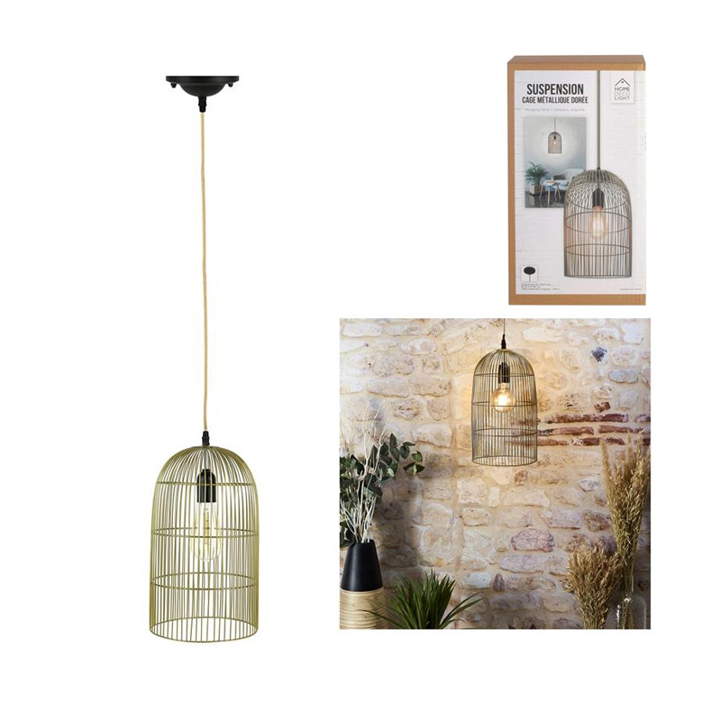 Το κρεμαστό φωτιστικό οροφής, από την εταιρία Home Deco Factory, διαθέτει μεταλλική βάση και μεταλλική υποδοχή λαμπτήρα. Έχει μεταλλικό αμπαζούρ σε σχέδιο κλουβιού, καλώδιο μήκους 130 cm και δέχεται λάμπα Ε27 40 W.