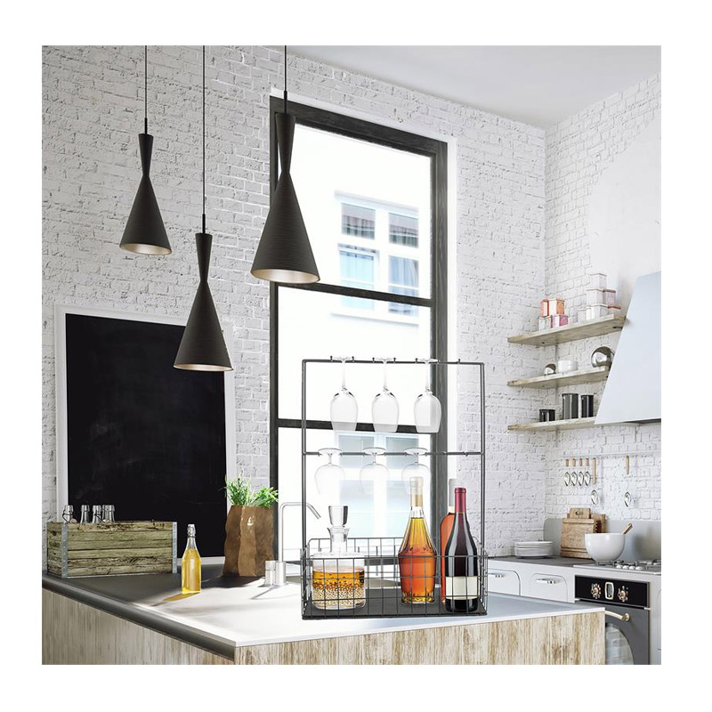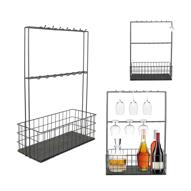 Το μίνι μπαρ, από την εταιρία Home Deco Factory, διαθέτει βιομηχανικό σχεδιασμό και μεταλλική κατασκευή. Μπορείτε να κρεμάσετε τα ποτήρια στα 16 άγκιστρα και να τοποθετήσετε τα μπουκάλια στη βάση του.