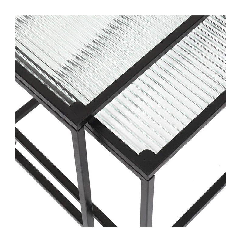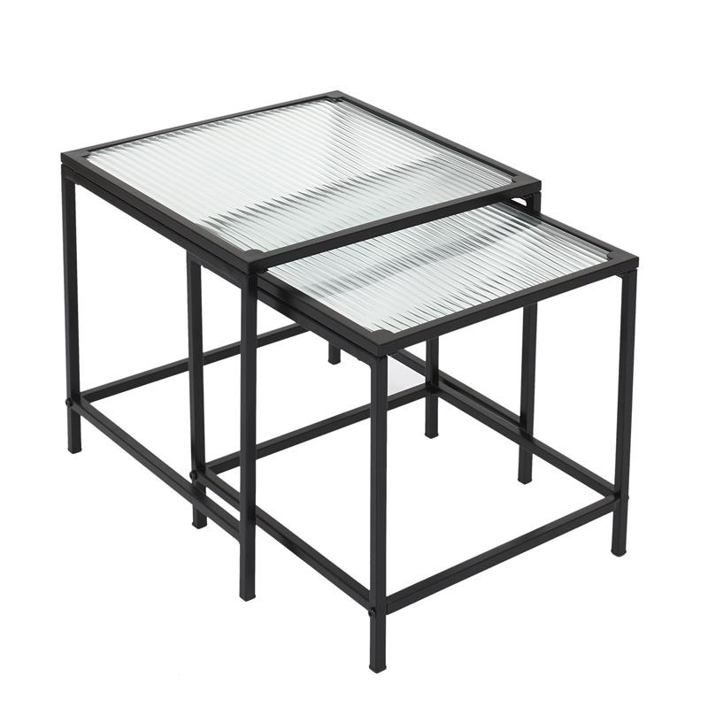 Το σετ, από την εταιρία Home Deco Factory, αποτελείται από 2 βοηθητικά μεταλλικά τραπέζια Nesting, με γυάλινες επιφάνειες.