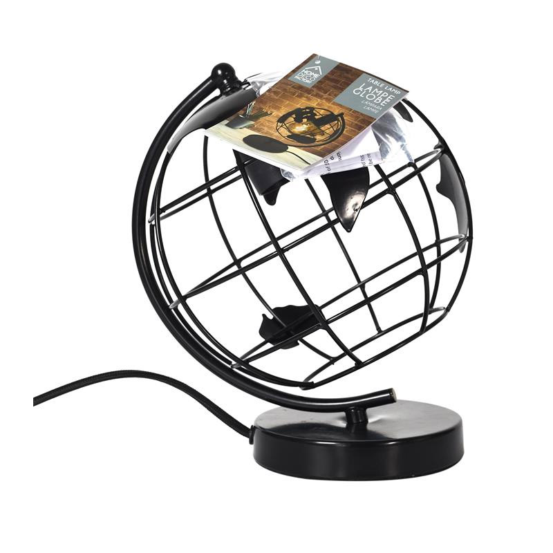 Το επιτραπέζιο φωτιστικό, από την εταιρία Home Deco Factory, διαθέτει σιδερένια κατασκευή με σχεδιασμό υδρόγειο σφαίρα. Δέχεται λάμπα E27 25 W και έχει καλώδιο μήκους 1.5 m.