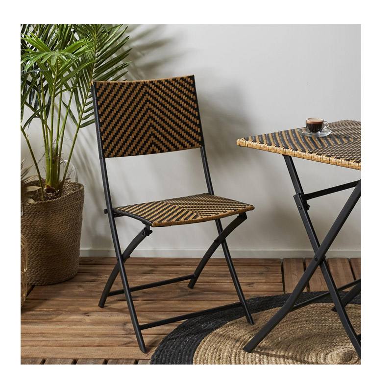 Η καρέκλα εξωτερικού χώρου, από την εταιρία Home Deco Factory, διαθέτει πτυσσόμενο σχεδιασμό με σιδερένια πόδια και επιφάνεια και πλάτη από πλαστικό.