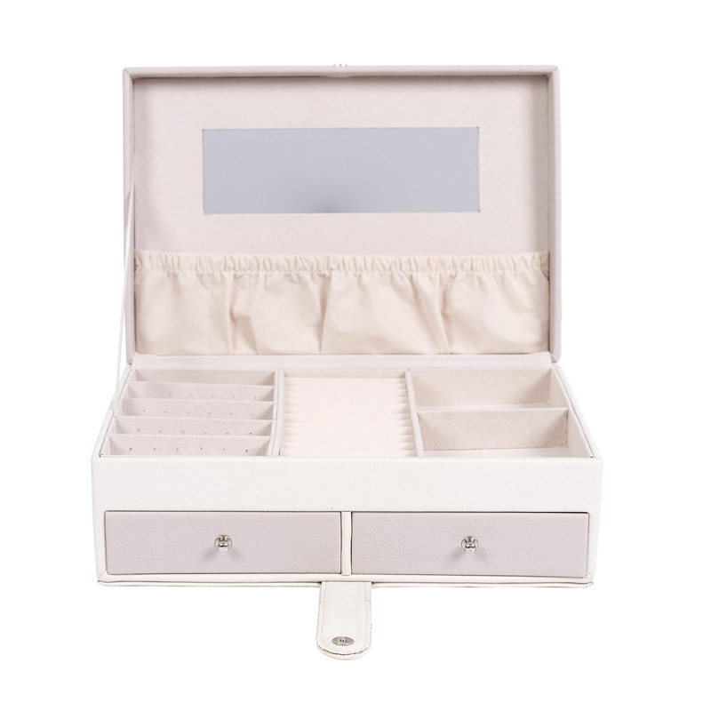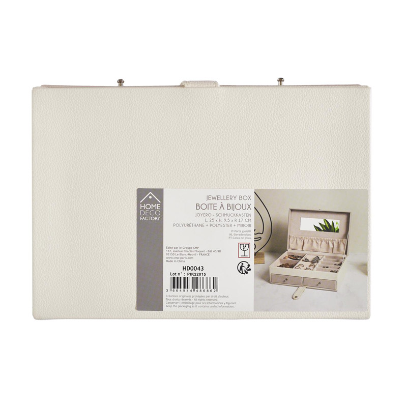 Η κοσμηματοθήκη – μπιζουτιέρα, από την εταιρία Home Deco Factory, είναι ιδανική για να έχετε τα κοσμήματά σας ασφαλή και τακτοποιημένα. Διαθέτει πολλαπλές θήκες, 2 μικρά συρτάρια στο κάτω μέρος και εσωτερικό καθρέπτη.