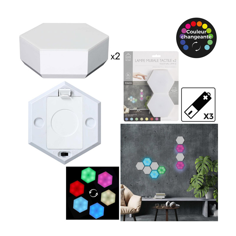 Σετ Διακοσμητικά Εξαγωνικά Επιτοίχια Φωτιστικά Αφής LED RGB 2 τμχ Home Deco Factory LA0002