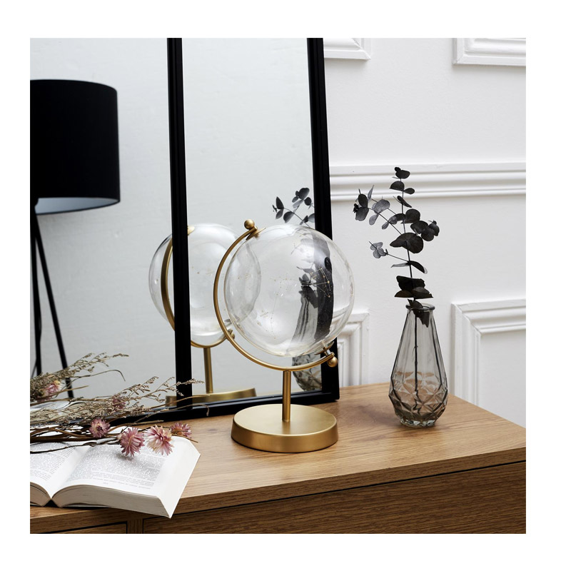 Η σφαίρα, από την εταιρία Home Deco Factory, είναι κατασκευασμένη από γυαλί με μεταλλική βάση και έχει ύψος 24 cm.