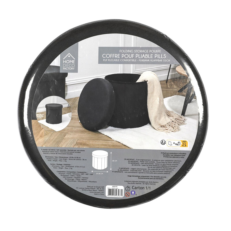 Το σκαμπό, από την εταιρία Home Deco Factory, είναι πτυσσόμενο με εύκολη συναρμολόγηση και μπορείτε να αποθηκεύσετε διάφορα πράγματα στο εσωτερικό του. Με μοντέρνο σχεδιασμό και ιδιαίτερα ανθεκτικό, ταιριάζει ιδανικά στη διακόσμηση κάθε σπιτιού. Το σκαμπό είναι κατασκευασμένο από ξύλο MDF, καλυμμένο με ύφασμα πολυεστέρα και αφρό πολυουρεθάνης.