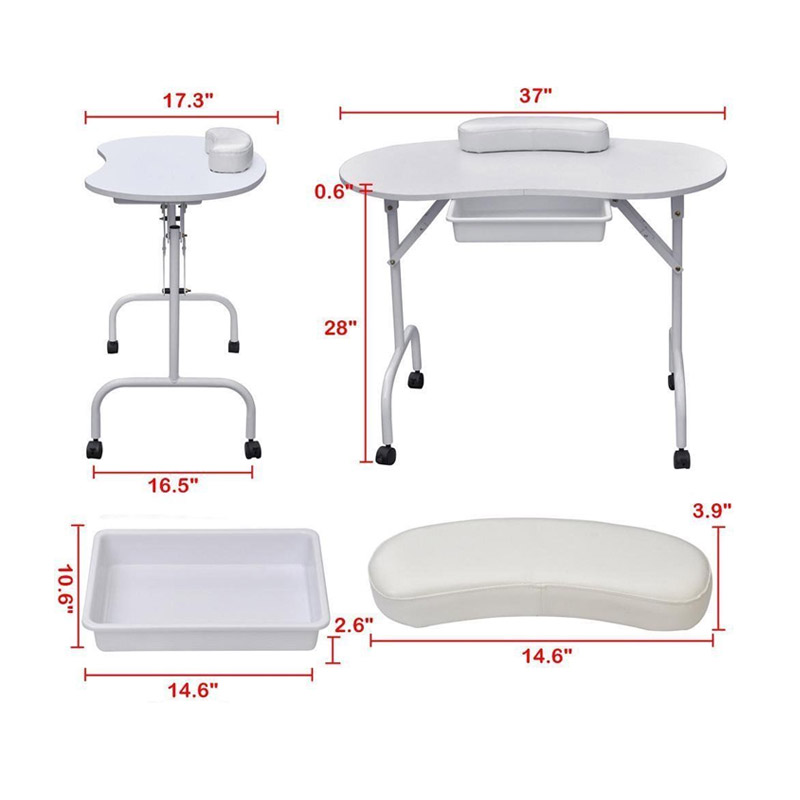 Το τραπέζι μανικιούρ, αποτελεί το ιδανικό αξεσουάρ για τους αισθητικούς νυχιών. Διαθέτει μεταλλικά και πτυσσόμενα πόδια, πλαστικό συρτάρι, καθώς και αφαιρούμενο, μαλακό μαξιλάρι καρπού.