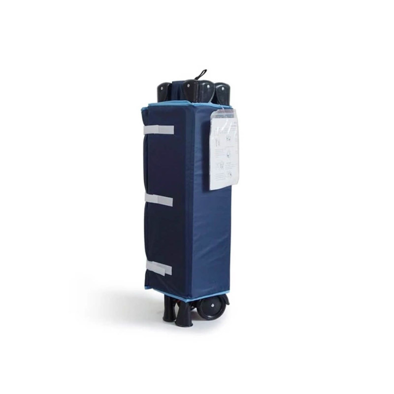 Το βρεφικό κρεβάτι έχει ευάερα πλευρικά τοιχώματα με πλέγμα, που επιτρέπουν στο μωρό να παρατηρεί το περιβάλλον, πλευρική θήκη για την αποθήκευση διαφόρων αξεσουάρ, καθώς και πλαϊνή είσοδο με φερμουάρ. Οι πίσω τροχοί είναι εξοπλισμένοι με φρένα και συνοδεύεται από τσάντα μεταφοράς και αποθήκευσης.