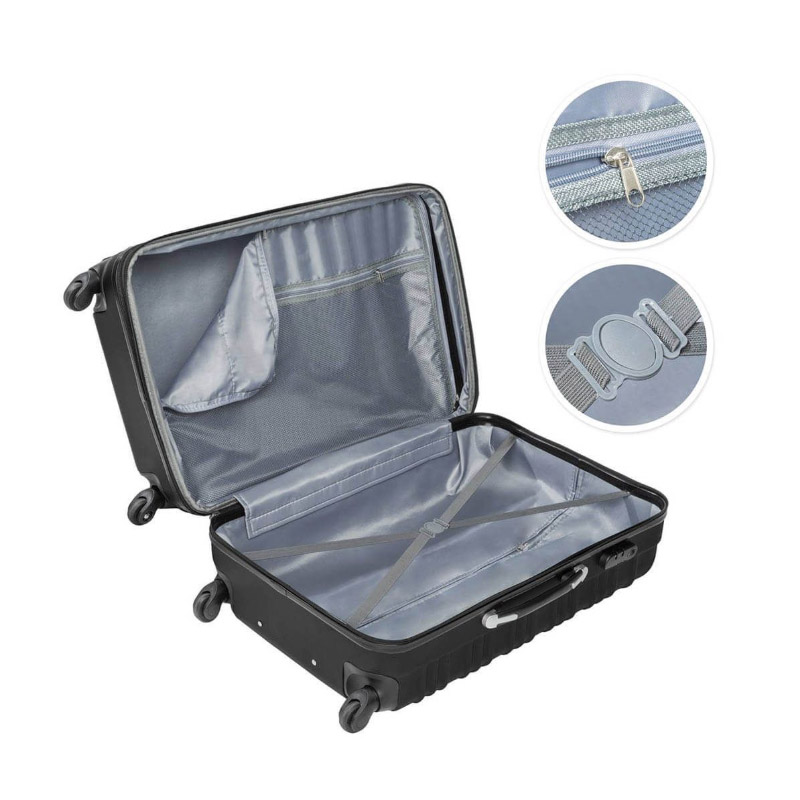 Το σετ, από την εταιρία Hoppline, αποτελείται από 4 βαλίτσες διαφορετικών μεγεθών καμπίνας, σκληρές, ιδανικές για όλη την οικογένεια. Η άκαμπτη καμπίνα προστατεύει τα αντικείμενα στη βαλίτσα και οι εσωτερικοί ιμάντες τα κρατούν στη θέση τους. Οι 4 περιστροφικοί τροχοί καθιστούν εύκολο το τράβηγμα ή την ώθηση, ενώ η τηλεσκοπική λαβή της κάθε βαλίτσας μπορεί να ρυθμιστεί σε 2 θέσεις.