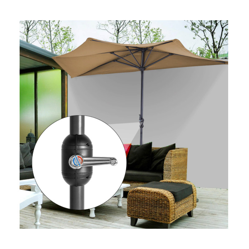 Η ημικυκλική ομπρέλα, από την εταιρία Hoppline, είναι ειδικά σχεδιασμένη για βεράντες και μπαλκόνια. Λόγω του σχεδιασμού της, μπορεί να τοποθετηθεί ακριβώς δίπλα στον τοίχο και λόγω του μεγέθους της εξασφαλίζει αρκετή σκιά. Με τη βοήθεια της χειροκίνητης μανιβέλας μπορεί να ανοίξει και να κλείσει χωρίς ιδιαίτερη δύναμη. Ισχυρά ενισχυτικά διατηρούν την ομπρέλα σταθερή.