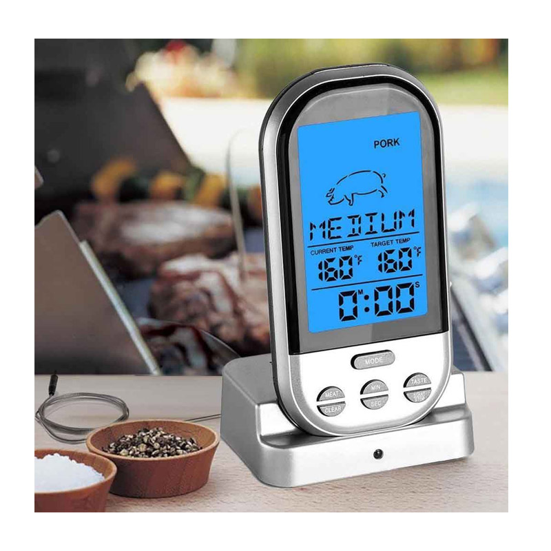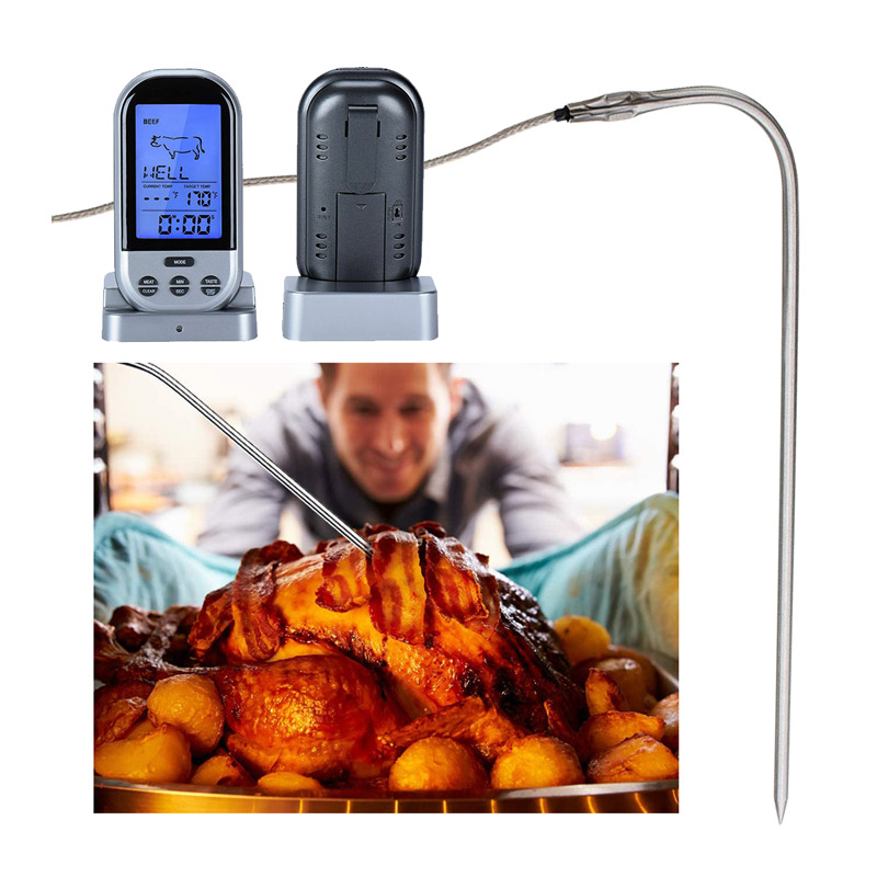 Το ψηφιακό θερμόμετρο μαγειρικής, από την εταιρία Hoppline, είναι μια απαραίτητη συσκευή για το ψήσιμο διάφορων κρεάτων, ψωμιών, ζυμαρικών, έτσι ώστε το εσωτερικό του φαγητού να μαγειρεύεται τέλεια. Κατασκευασμένο από ανοξείδωτο ατσάλι, διαθέτει χρονοδιακόπτη και φωτισμένη οθόνη και έχει εύρος μέτρησης της θερμοκρασίας από 0 ° C έως + 250 ° C.