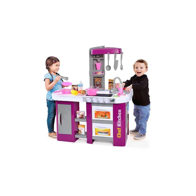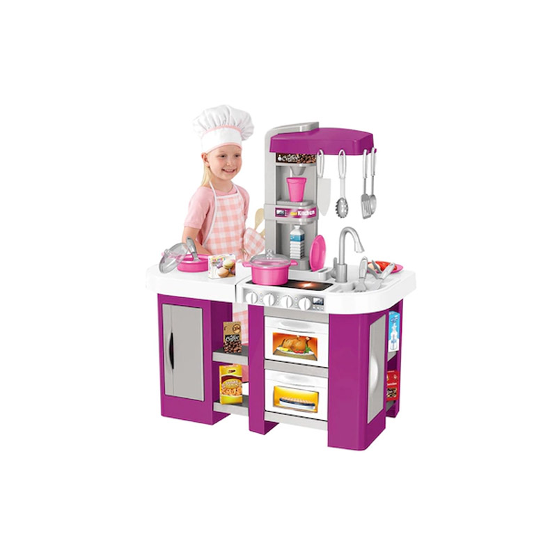 Η παιδική κουζίνα περιέχει όλα τα απαραίτητα αξεσουάρ κουζίνας όπως πιάτα, μαχαιροπίρουνα, κατσαρολάκια, τηγάνια, φαγητά, συσκευασίες τροφίμων και πολλά άλλα. Το πλήρες σετ είναι κατασκευασμένο από ανθεκτικό πλαστικό, μη τοξικό και με στρογγυλεμένες άκρες.