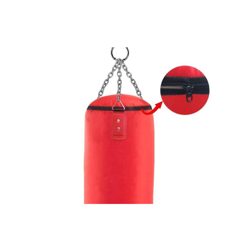 Ο σάκος στερεώνεται στην οροφή με τη βοήθεια των αλυσίδων στερέωσης, παρέχοντας έτσι μια πραγματική εμπειρία πυγμαχίας. Είναι γεμάτος με άμμο, κατασκευασμένος από ανθεκτικό υλικό, ώστε να αντέχει καλά στις καθημερινές προπονήσεις. Υπάρχει ένα φερμουάρ στην κορυφή για να διευκολύνεται ο καθαρισμός και η πιθανή αντικατάσταση της άμμου.