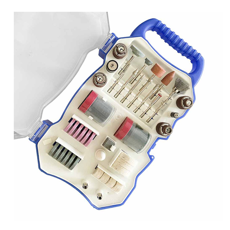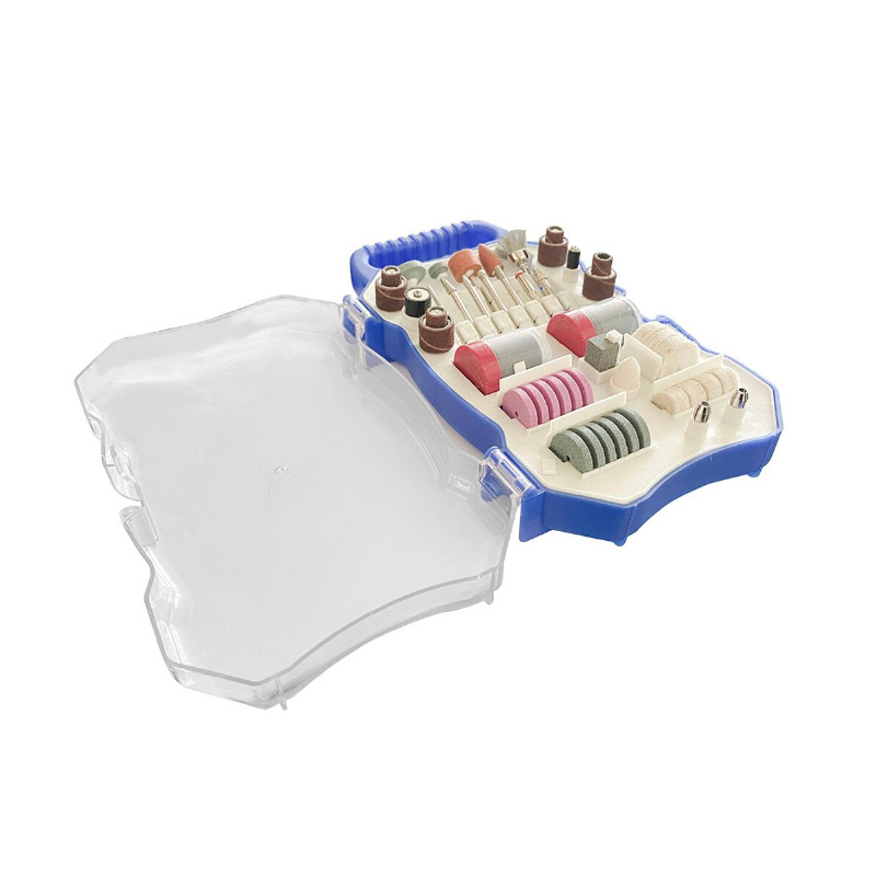 Το σετ, από την εταιρία Hoppline, αποτελείται από 66 αξεσουάρ διαφόρων μεγεθών και τύπων, κατάλληλα για επεξεργασία ξύλου, μετάλλου, πλαστικού, πέτρας, για διάτρηση, λείανση, φρεζάρισμα, στίλβωση κ.λπ. Συνοδεύονται από ανθεκτική κασετίνα αποθήκευσης και μεταφοράς.