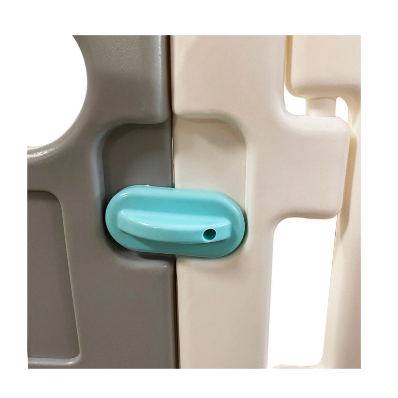 Ο παιδότοπος, από την εταιρεία Hoppline, αποτελείται από 10 πάνελ, κατασκευασμένα από υψηλής ποιότητας πλαστικό υλικό, με λεία επιφάνεια, μη τοξικό και απόλυτα ασφαλές. Μπορεί να ρυθμιστεί εύκολα και γρήγορα και να αποσυναρμολογηθεί το ίδιο εύκολα. Κάθε πάνελ διαθέτει στην επιφάνειά του διαδραστικά παιχνιδάκια που θα προσελκύσουν το ενδιαφέρον του παιδιού, λαβή για εύκολη μετακίνηση και πόρτα με ενσωματωμένη κλειδαριά (ανοίγει μόνο από έξω) για τη μέγιστη ασφάλεια του παιδιού. Διπλώνει και αποθηκεύεται εύκολα.
