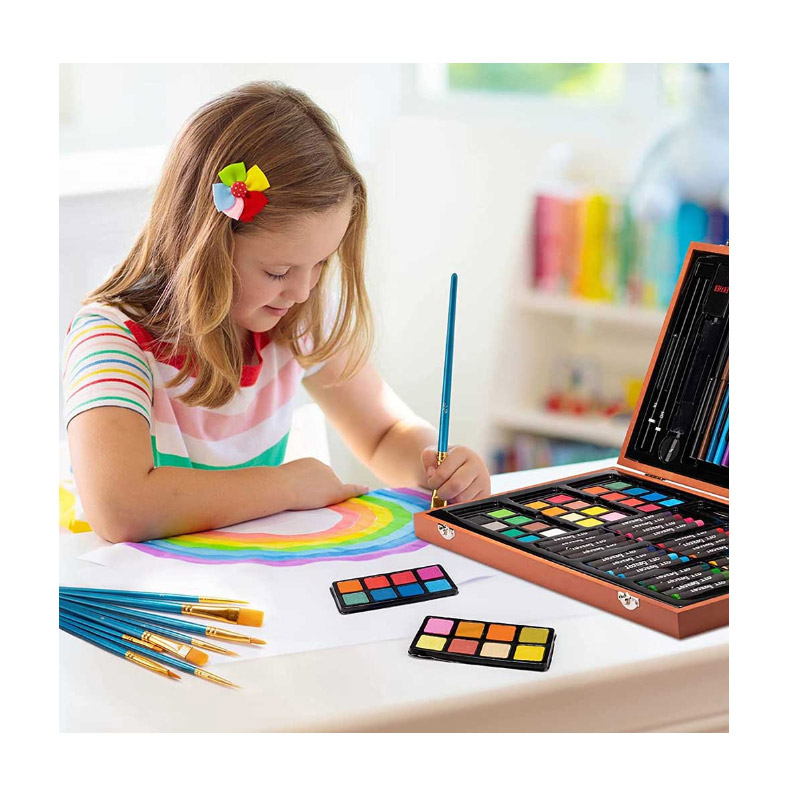 Το σετ ζωγραφικής, από την εταιρία Hoppline, αποτελείται 84 τεμάχια, Περιέχει όλα όσα μπορούν να χρησιμοποιήσουν τα παιδιά για να δημιουργήσουν μόνα τους, όπως μολύβια, μπογιές, κιμωλίες και άλλα αξεσουάρ. Συνοδεύεται από ξύλινο βαλιτσάκι με λαβή και κλειδαριές ασφαλείας για αποφυγή τυχαίου ανοίγματος.