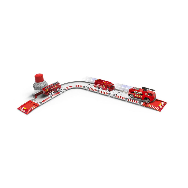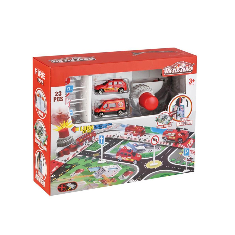 Το σετ, από την εταιρία Hoppline, αποτελείται από ένα διαδραστικό χαλάκι και διάφορα αξεσουάρ. Το χαλάκι, διπλώνει με velcro και κάνει το παιχνίδι ακόμα πιο συναρπαστικό. Τα παιδιά μπορούν να τρέξουν στους δρόμους της πόλης με το πυροσβεστικό όχημα και να μάθουν τις βασικές ρυθμίσεις της κυκλοφορίας με τις παρεχόμενες πινακίδες. Η κίνηση των οχημάτων, εκτός από χειροκίνητα, γίνεται και με το κουμπί που υπάρχει στο χαλί, αφού τοποθετηθούν τα παρεχόμενα τμήματα του δρόμου.