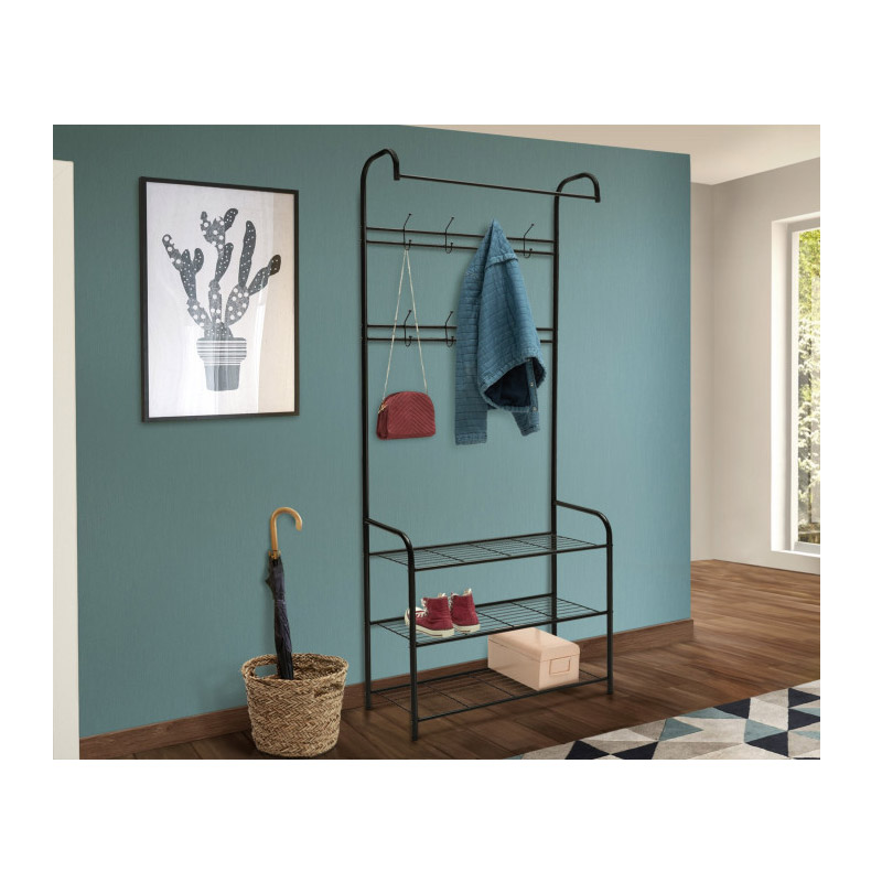 Το έπιπλο εισόδου, από την εταιρία Idomya, διαθέτει μεταλλική κατασκευή και είναι ιδανικό για την είσοδο του σπιτιού σας. Διαθέτει στρογγυλά μεταλλικά άγκιστρα 16 θέσεων για να κρεμάτε μπουφάν, παλτό, κασκόλ, ζώνες, τσάντες κλπ. Επίσης, στο κάτω μέρος είναι εξοπλισμένο με 3 ράφια για να βάζετε τα παπούτσια σας.