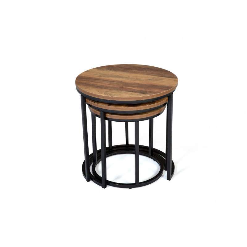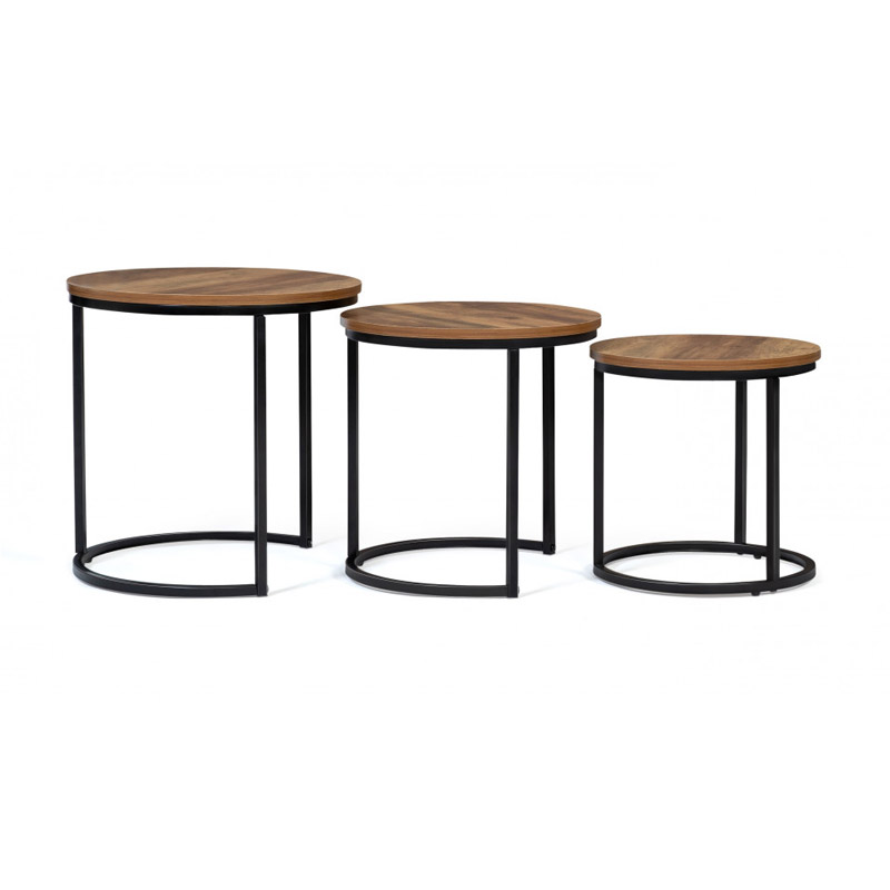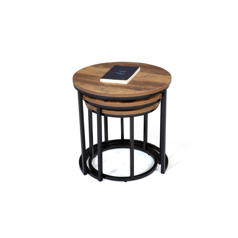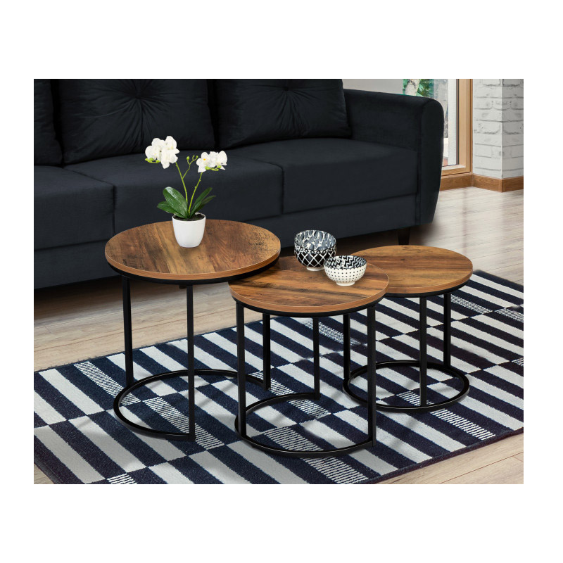 Το σετ, από την εταιρία Idomya, αποτελείται από 3 βοηθητικά στρογγυλά τραπέζια Nesting διαφορετικού μεγέθους, ιδανικά για τη διακόσμηση του σαλονιού σας. Διαθέτουν βιομηχανικό σχεδιασμό με μεταλλικό σκελετό, επιφάνεια από μοριοσανίδες και μπορούν να τοποθετηθούν το ένα κάτω από το άλλο, παρέχοντας σας έτσι εξοικονόμηση χώρου.